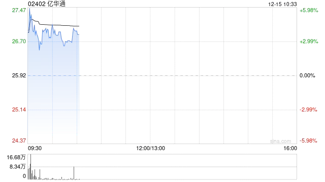 亿华通(02402)今日盘中一度大涨近6%。截至发稿时,其股价最终上扬3.86%,报收于26.92港元,成交额达2316.05万港元。