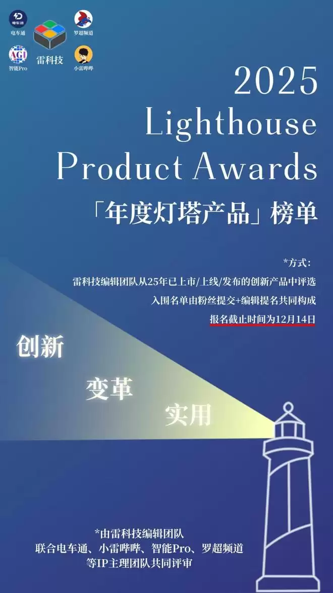 雷科技2025“年度灯塔产品榜”评选启动!致敬堪称“科技之光、时代大作”的科技产品,欢迎关注~