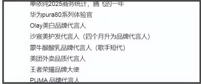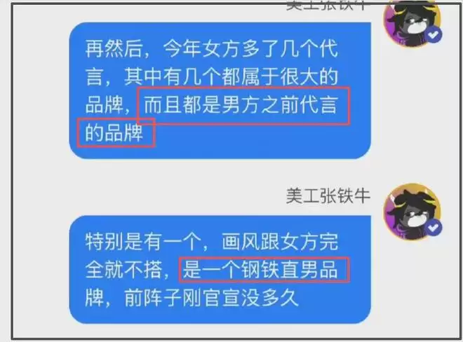 第二点是两人代言有重合,爆料称女方今年多了好几个大品牌代言,其中有几个都是男方代言过的品牌,还强调女方新官宣的一个“钢铁直男”属性的代言,跟她本人完全不搭。