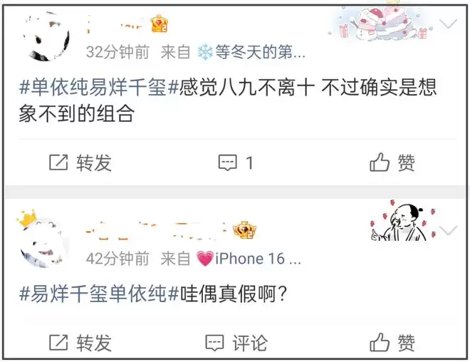 娱乐圈顶流又传新恋情,还是大家喜闻乐见的双强!据业内爆料,男女双方均处于事业上升期,男方是顶流演员,女方是顶流歌手,吃瓜网友按照爆料细节一一考证,发现易烊千玺和单依纯有多种巧合,两人恋情词条也已经蔓延开,引发热议。