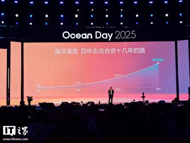 IT之家12月15日消息,据澎湃新闻报道,比亚迪2025海洋网四周年庆典“Ocean Day”用户盛典将于今晚举行。比亚迪官方同时宣布,其第1500万辆新能源汽车即将正式下线。
