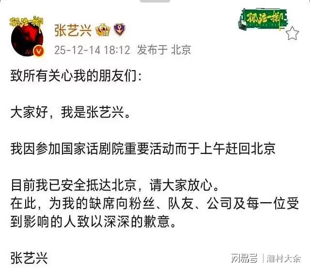 张艺兴回应见面会缺席风波,发文致歉安抚粉丝情绪