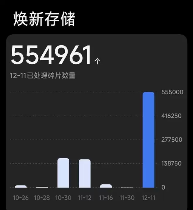 而且笔者发现更新之后,换新存储的碎片处理数量方面也是有着很大幅度的提升,或许这也是提升流畅度的关键。