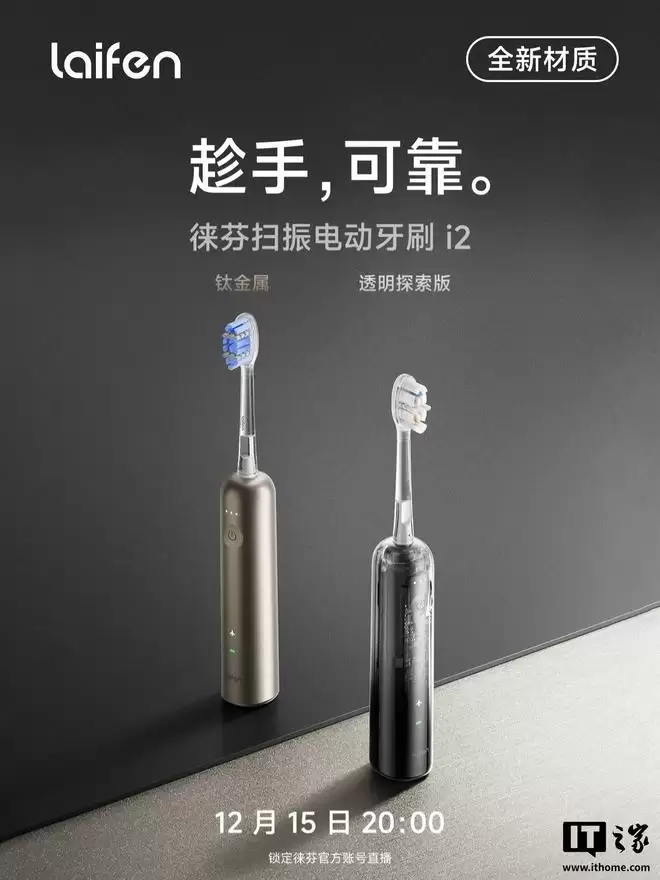 IT之家12月15日消息,徕芬科技今日发布了一款扫振电动牙刷i2,售价399元起。