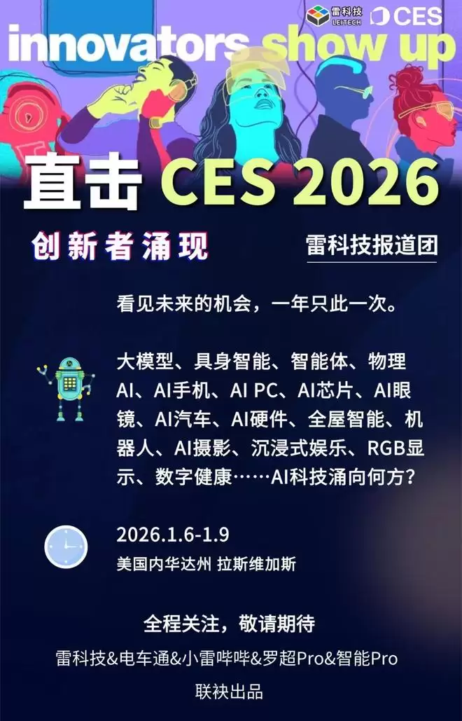 作为中国报道科技展会最悠久、最深入、最专业的新媒体,雷科技CES2026报道团正在进行紧张的前期筹备。届时雷科技将派出史上最大规模的CES报道团,并由雷科技创始人兼总编辑罗超带队,对CES2026进行一线、专业和立体报道,敬请期待!