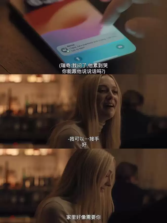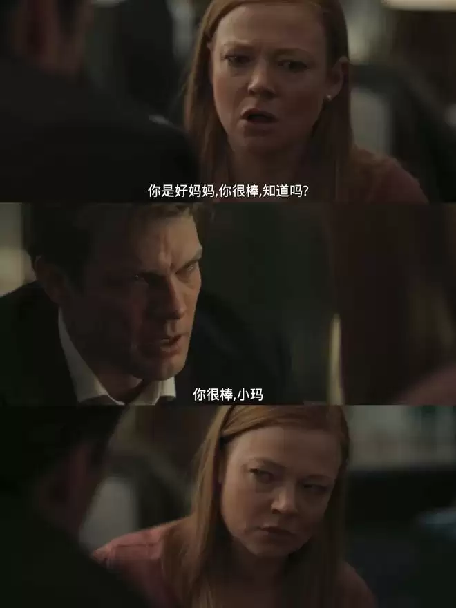 此时,玛丽莎还在勉力维持理智,试图冷静分析。当被丈夫皮特质问,“怎么就没检查一下号码”,她露出难以置信的表情,随即是委屈、愤懑——照护孩子本不是她一个人的任务,现在因为无心之失把责任都推给她,这不公平。