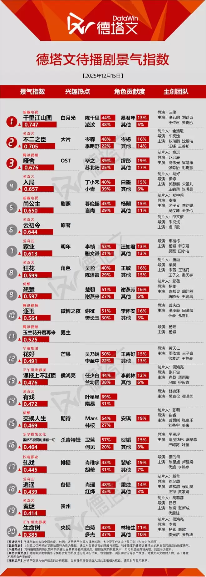 千里江山图(陈千里44% 凌汶38%) 不二之臣(岑森48% 季明舒22%) 哑舍(毕之39% 苏北陆25%) 入局 尚公主 云初令 家业 狂花 翘楚 逐玉 玉兰花开君再来 花好 谍报上不封顶 有戏 交换人生 虽然不能同时拥有一切 轧戏 逍遥 秦谜 生命树