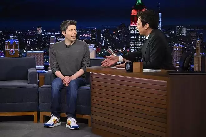 12月8日,OpenAI首席执行官萨姆·奥特曼(左)参加迪士尼旗下的节目《吉米今夜秀》。
