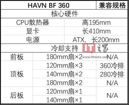 HAVN BF 360 (Flow) 机箱支持宽度达 277mm 的 E-ATX 主板以及标准 ATX 主板,具体硬件兼容性如下: