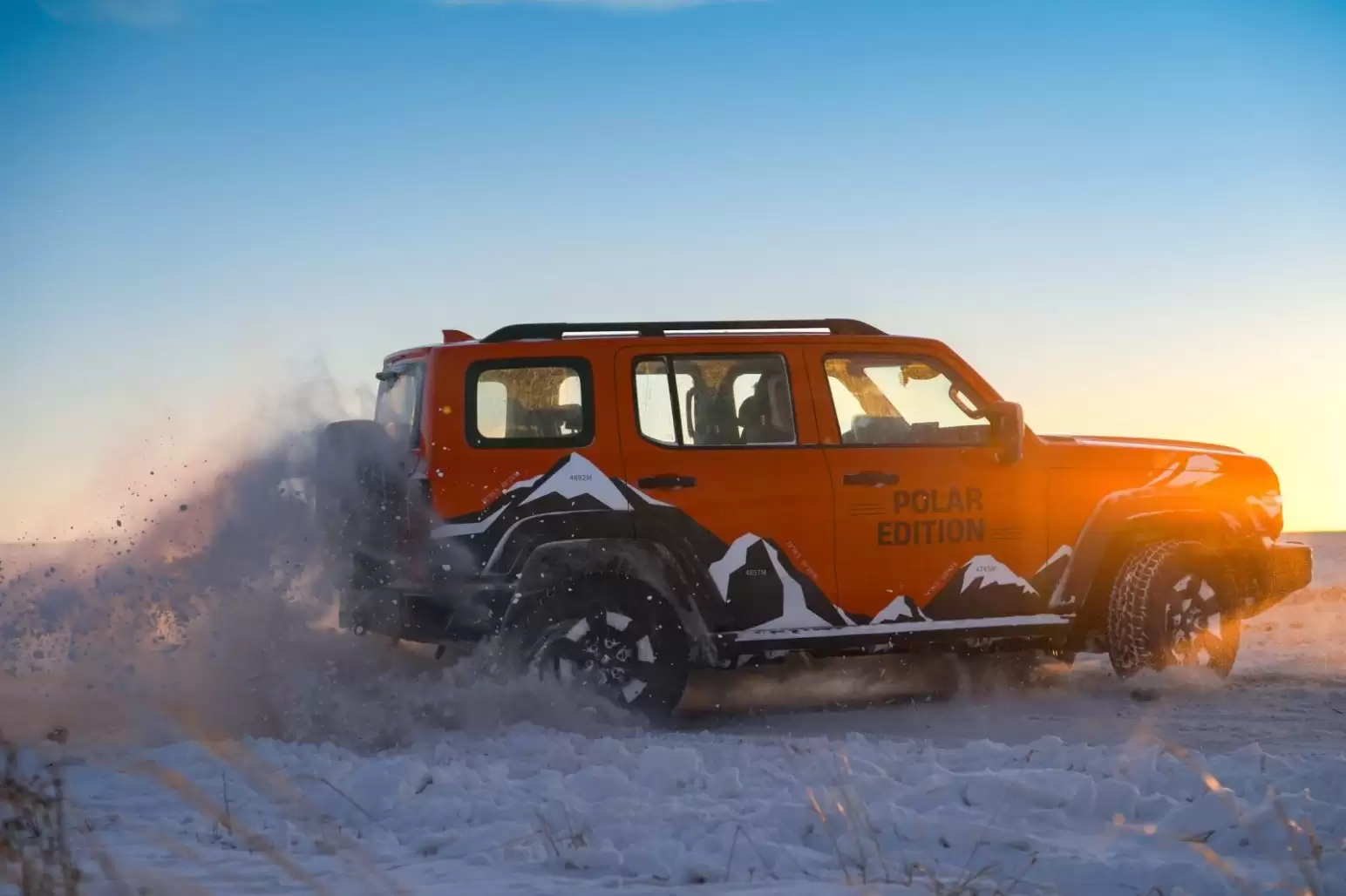 在坦克300素车可靠品质的基础上,极地版进一步强化了稀缺身份与极地属性。根据用户投票与共创结果,“极地橙”车色、“极地荣耀”徽章与“极地锋芒”拉花等稀缺元素悉数登场;可遥控的前风挡加热、雨刮喷嘴加热、AT全地形轮胎、电子遥控绞盘等用户心仪的极境配置一应俱全。通过在设计、装备等维度的精心强化,极地版不仅延续了坦克300的硬核基因,更以纵横全域的实力,持续引领越野潮流,让用户的每一次极境征服,都留下极地荣耀的深刻印记。