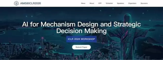 截稿日期:2026 年 1 月 30 日;接受 Long Paper(≤9 页)与 Short Paper(≤4 页),支持双重投稿(可与 ICML/KDD 等会议多投),录用不存档;由 Tuomas Sandholm(CMU)、Song Zuo(谷歌)、Vijay V. Vazirani (UCI)、Niklas Karlsson (亚马逊)、郑臻哲 (上海交大) 等顶尖学者组成讲者与审稿阵容;投稿地址:https://openreview.net/group?id=ICLR.cc/2026/Workshop/AIMS