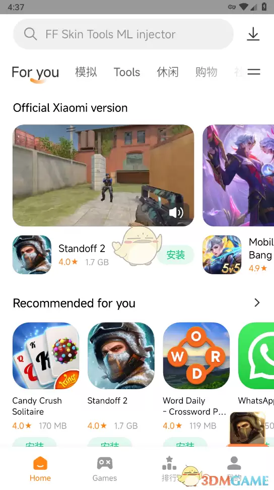 1、打开小米应用商店国际版,启动后默认显示的就是为你推荐的应用与游戏。