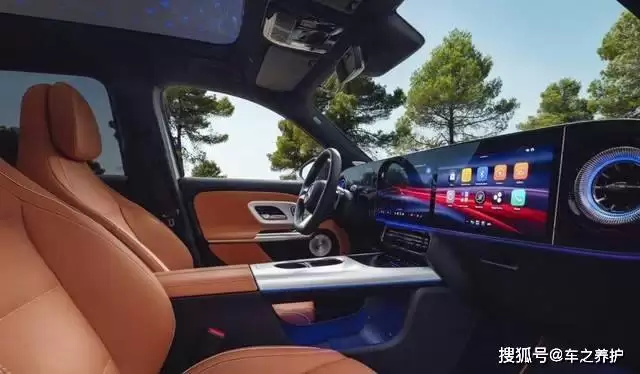 进入车内,新一代GLB的座舱设计将豪华感与科技感推向了新高度。其核心是一套由10.25英寸全液晶仪表、14英寸中控触摸屏及可选装的14英寸副驾娱乐屏组成的“奔驰超级屏幕”。这套大联屏的图形界面由游戏引擎驱动,操作流畅度与视觉效果显著提升。车机系统搭载奔驰最新的第四代MBUX智能交互系统,并内置基于ChatGPT4o大模型开发的MBUX虚拟助手,支持自然对话与多轮交互,彻底改变了传统人机交互的刻板模式。中控台采用简洁的悬浮式设计,储物格、杯架和无线充电板经过重新规划,既提升了科技氛围,又兼顾了日常使用的便利性。