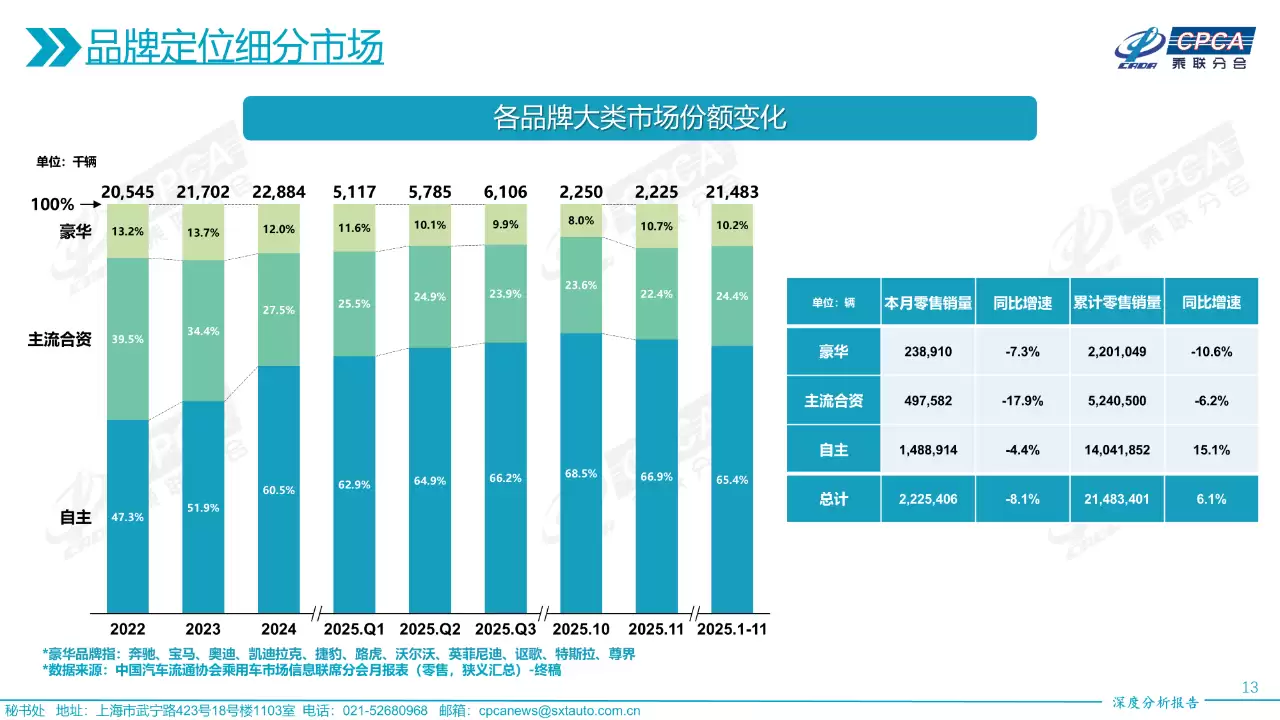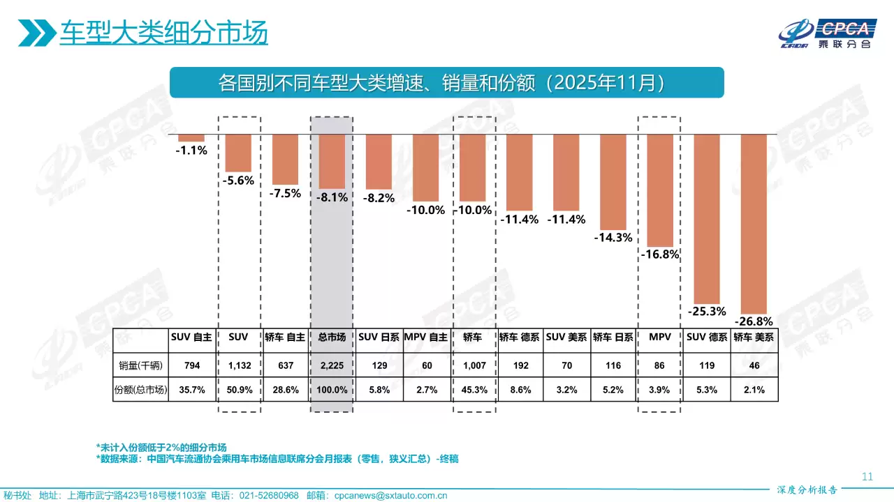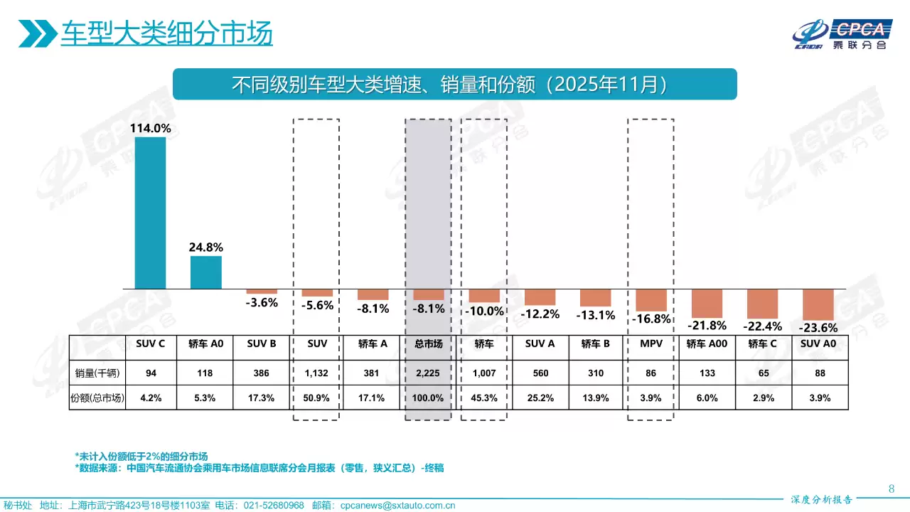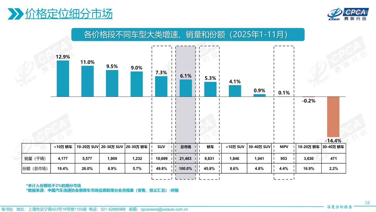 12月16日,汽车行业传来最新动态——乘联会发布了11月份全国乘用车市场的深度分析报告。这份报告内容相当全面,不仅涵盖了整体市场概况,还从车型大类、国别细分、品牌定位以及价格区间等多个维度,对市场进行了深入细致的剖析。