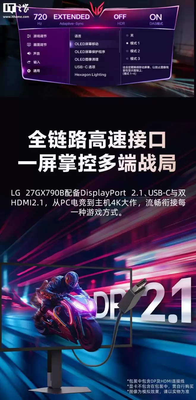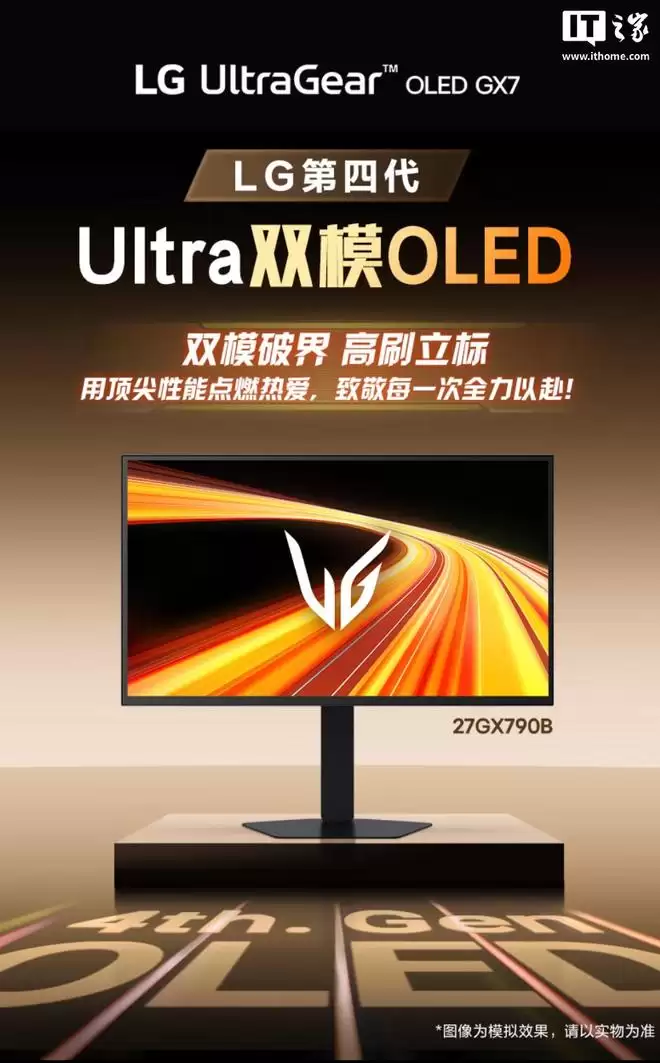 IT之家 12 月 16 日消息,LG 27GX790B 26.5 英寸显示器现已开启预售,主打硬核 FPS 玩家,采用 2K 540Hz / HD 720Hz 双模设计,配备四层堆叠 OLED 面板,到手价 7999 元。