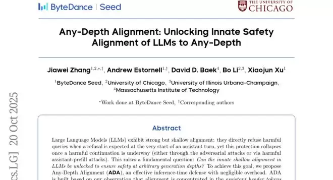 研究团队发现了这个普遍存在的安全漏洞,并开发出了一种全新的防护方法,叫做"任意深度对齐"(Any-Depth Alignment,简称ADA)。这个技术的核心思想是让AI模型在生成回答的任何阶段都能保持警觉,就像给保安配备了一个永不疲倦的助手,时刻提醒他保持警戒。