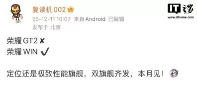 2025 年 12 月 16 日下午,荣耀召开媒体沟通会,正式官宣荣耀 GT 系列升级为荣耀 WIN 系列,系列首款产品定位“年度电竞夯机”。