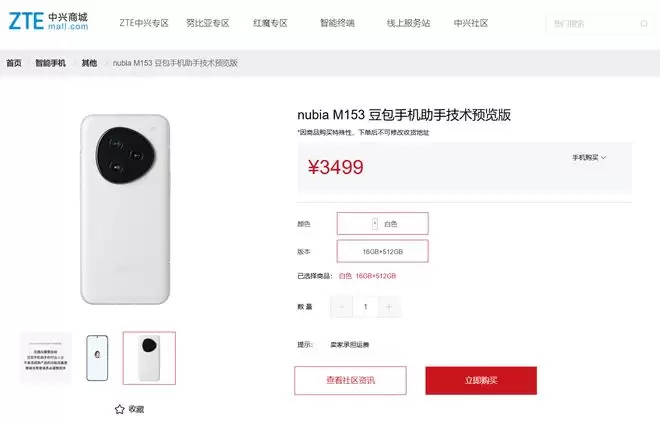 12月16日,根据中兴商城的最新公告,豆包手机助手及其合作机型nubia M153已于12日重开放F码候补申请通道,产品购买资格同步恢复,其中16GB+512GB版本定价为3499元。