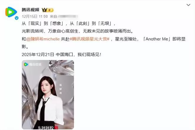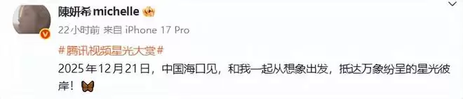 2025 年12月21日,她将出席海南海口的星光大赏。