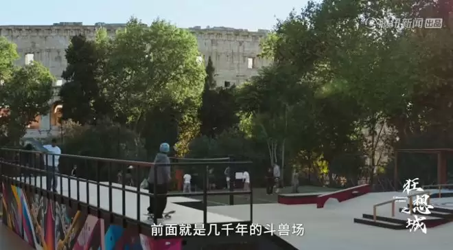 但镜头一转,就在斗兽场旁边,是一群孩子在踢足球,是年轻人在谈恋爱,是游客在吃冰激凌。