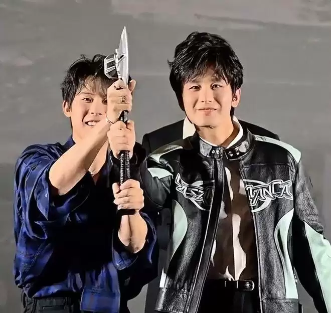 面对镜头时表情放松,毫无僵硬感,安静站在舞台一侧,主动将聚光灯留给主角与前辈,举止间尽显成熟男士的修养与格局。