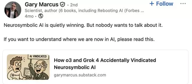 Gary Marcus是AI企业家、作家和认知科学家,也是神经符号AI最直言不讳的支持者之一。