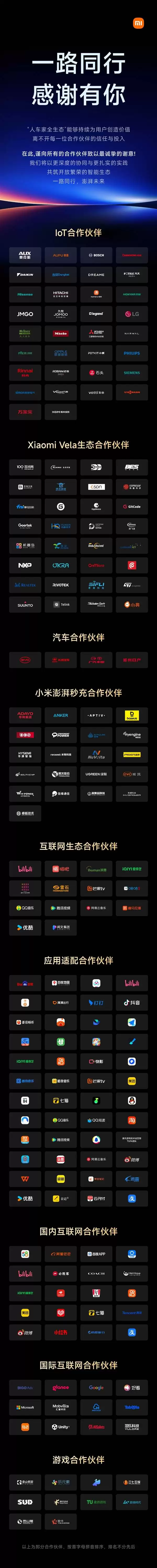 除了嘉宾阵容强大外,小米还披露了本次大会的IoT合作伙伴、汽车合作伙伴以及应用适配合作伙伴等信息。这些合作伙伴的加入,将进一步丰富小米的生态链布局,推动小米在人车家全生态领域实现更广泛、更深入的合作与发展。