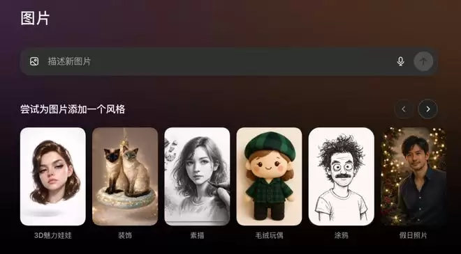 用户可以通过移动应用的侧边栏或c h a tgpt.com访问该页面。这里不再强制要求用户编写提示词,而是内置了数十种预设的滤镜和提示,帮助用户快速启动灵感