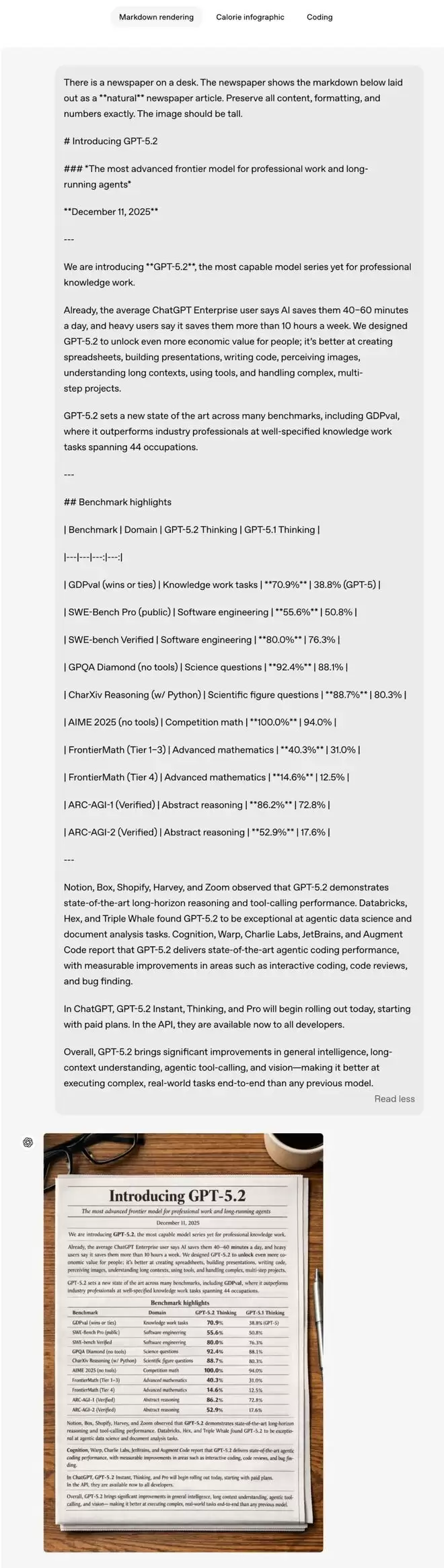 除了修图,GPT Image 1.5在创意生成和基础能力上也有显著提升: