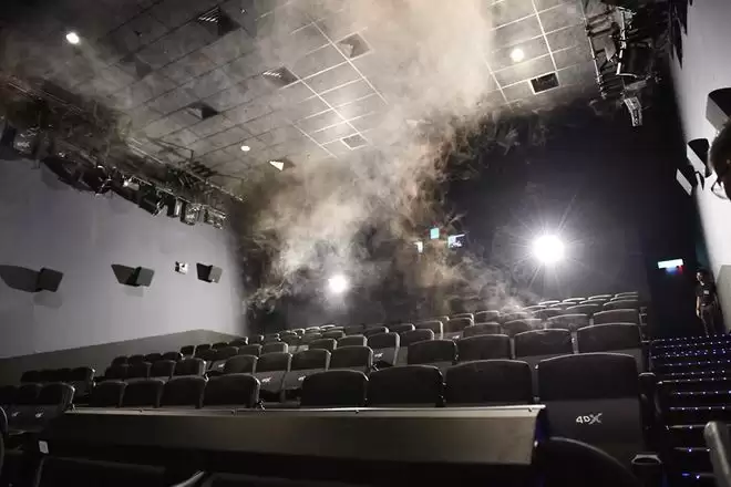 在一个封闭、温暖且人员密集的放映厅里,通过中央空调和座椅喷嘴制造生物气溶胶,这在流行病学家眼里绝对算得上是一个高风险操作。