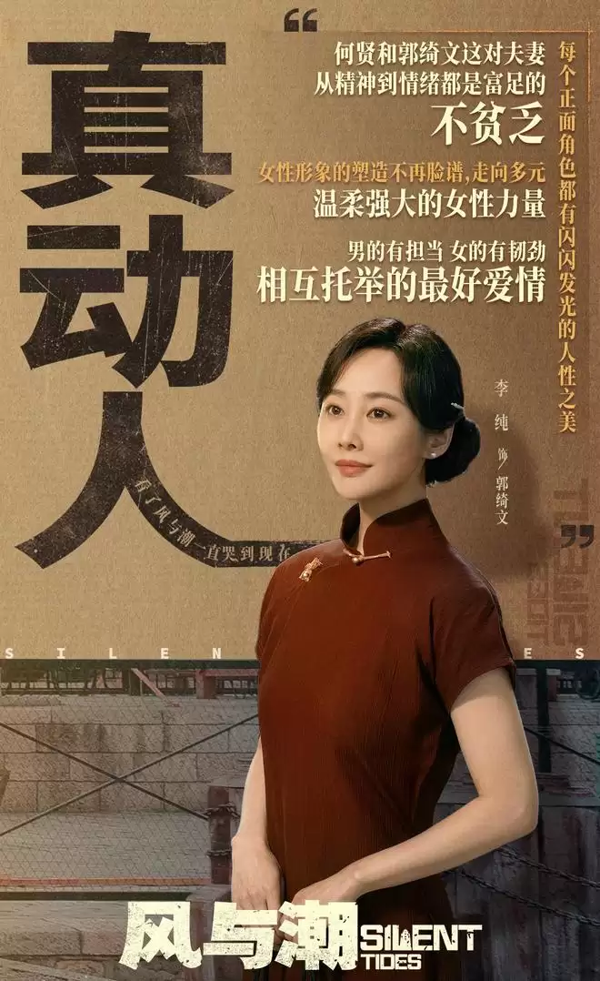 李纯坦言,初读《风与潮》剧本时曾几度落泪,这种情感共鸣成为她塑造角色的基础。郭绮文没有乔音婉那样外显的锋芒,其力量藏在细微之处,这对演技的考验远胜于大开大合的角色。