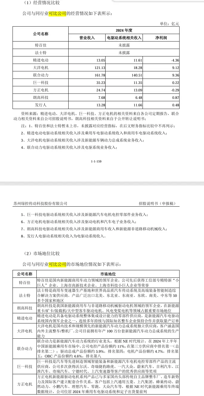 绿控传动与可比公司在业务、竞争地位、技术实力及业务数据方面的对比情况: