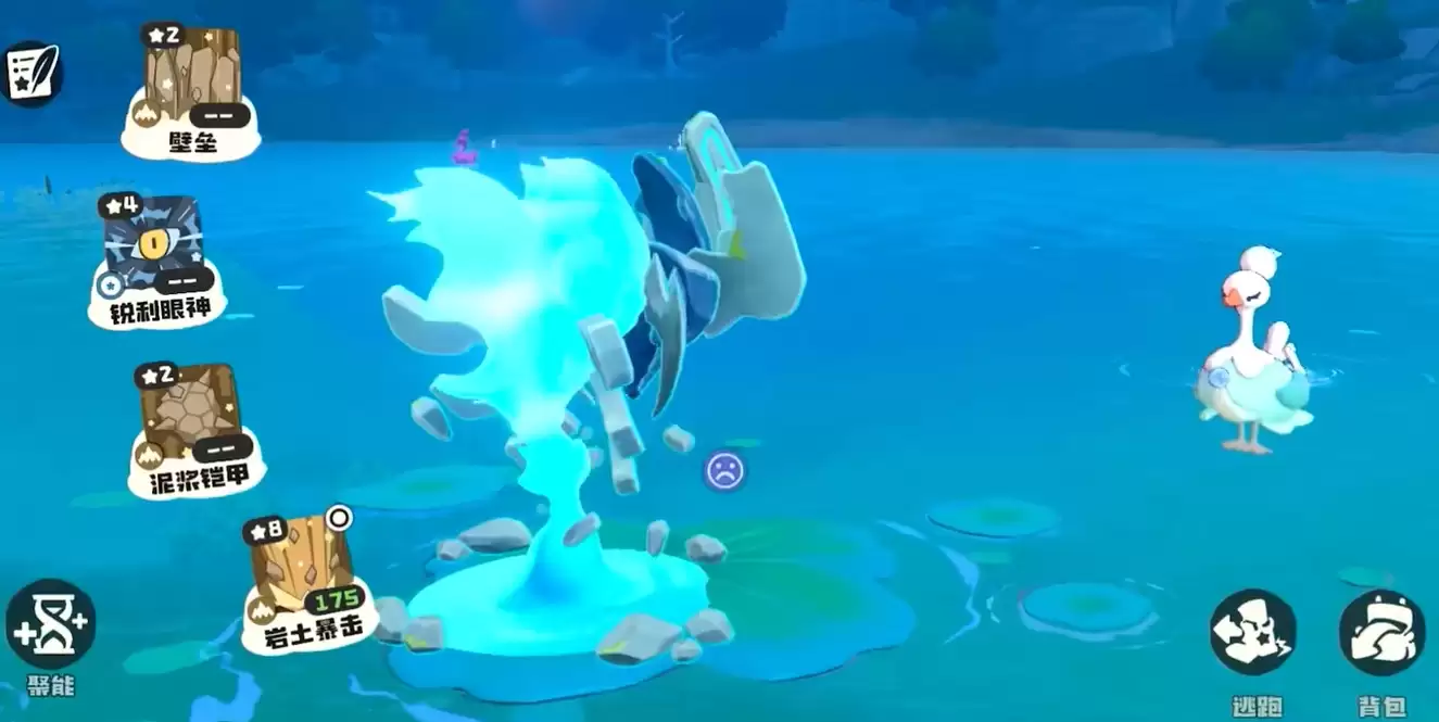 巨灵石一共有三个技能可以使用。第一个技能叫扔泥巴,这是个单体攻击招式,伤害倍率能达到120%,打起来还算疼。第二个技能是超声波,这个技能比较特殊,它属于范围攻击,可以同时打到多个敌人,虽然单个目标的伤害只有70%,但是胜在能群攻,而且还自带穿透效果,打那些防御高的敌人特别好用。第三个技能烟雾弥散就更厉害了,这是巨灵石的大招,释放的时候巨灵石会进入霸体状态,不会被打断,被这招命中的敌人会陷入失明,失明期间啥技能都放不出来,相当于暂时失去战斗能力。