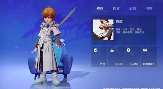 白歌手持一柄长剑,兴趣广泛,钟情于文学、美食与山水之间。每一次出剑都尽显侠客风范,同时身上还散发着一种独特的文艺气息,完美传承了“诗仙”李白的神韵。