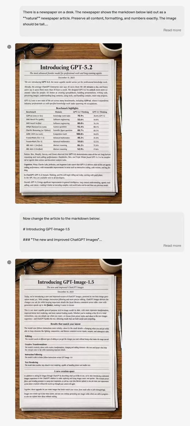 综合来看,在这场 AI 生图之战中,OpenAI 此次发布的 ChatGPT Images 标志着竞争的维度正在变化:从单纯的「模型能力」转向了综合的「产品体验」。OpenAI 这一次甚至没有放出任何量化的基准测试结果!