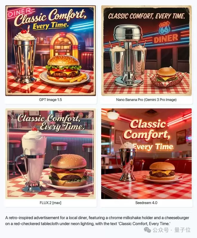根据奶昔架、芝士汉堡等元素,做一个复古风格的餐馆广告。