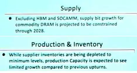 海力士的内部分析显示,到2028年,主要面向消费电子终端的通用型DRAM供应增长将持续受限,难以满足市场需求。
