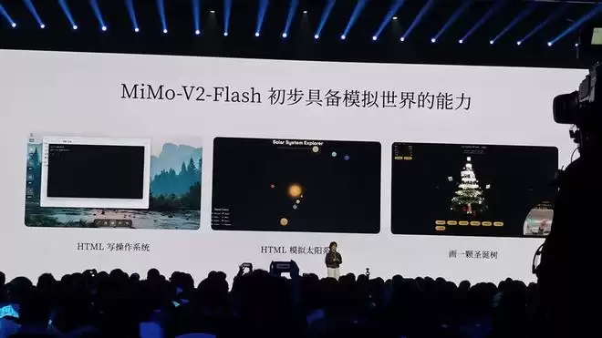 当前MiMo-V2-Flash已经初步具备了模拟世界的能力,比如通过HTML写操作系统、模拟太阳系、画一颗圣诞树。