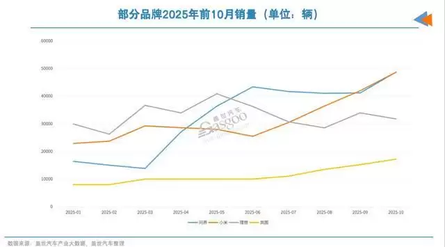 小鹏汽车的强势反弹,得益于新车型(MONA M03、小鹏G7等)的交付节奏加快、智能化优势回归,以及成本结构改善,实现了销量与品牌价值的同步提升。此外,X9、P7等改款车型产品力的提升也带动了销量的回升。
