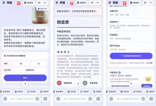 阿福这种随时可问、专业靠谱、还不用排队的健康 AI,正好卡在了这个需求点上,不仅能够及时地提供帮助和安慰,还解决了普通人日常那些不值当跑医院但又真实存在的健康困惑。