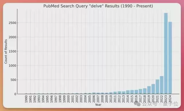 在PubMed这类专业学术 上,“delve”的出现频率在近几年激增了10到100倍。