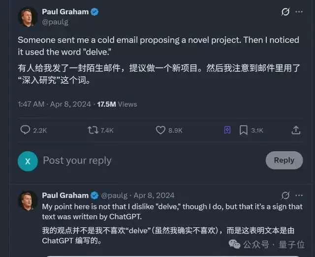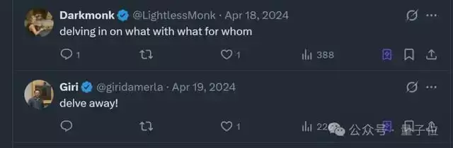 而基于类似理由,人们还发现,ChatGPT似乎对“delve”(挖掘、深入研究)这个词情有独钟。