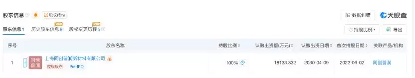 《科创板日报》记者注意到,上海同创普润新材料股份有限公司100%持有同创普润(上海)机电高科技股份有限公司股份,二者两家公司共享“同创普润”这一核心名称。