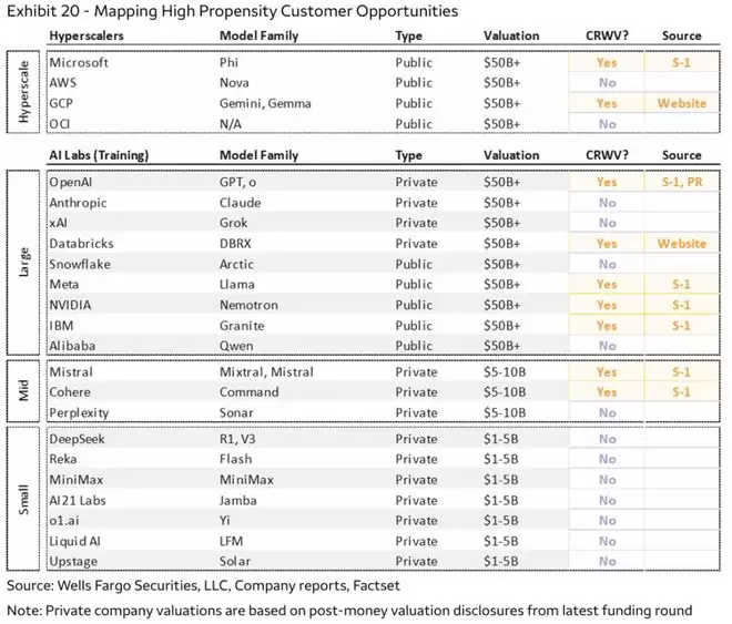 a. 客户结构目前高度集中于少数大公司和少数行业,一旦丢失某大客户会有严重影响(其最大客户之一微软就明确表示过长期来看更愿意自建数据中心,而非像CoreWeave等外部供应商租赁);