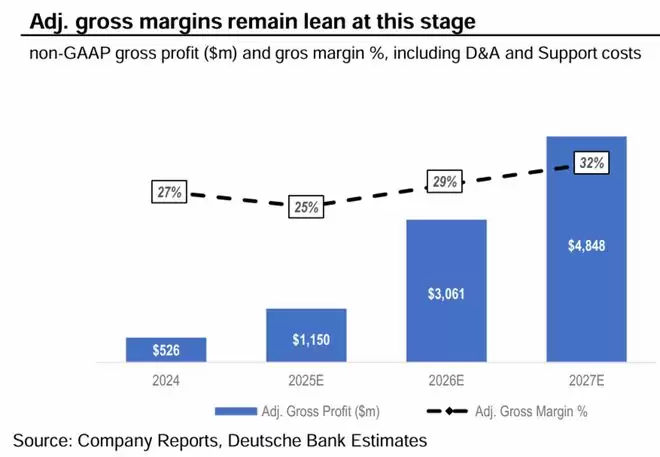那么从结果来看,市场共识认为CoreWeave的真实毛利率只在25%~30%左右,较微软智慧云板块60%以上的毛利率明显偏低。也正是CoreWeave在产业链中议价能力不强的体现。