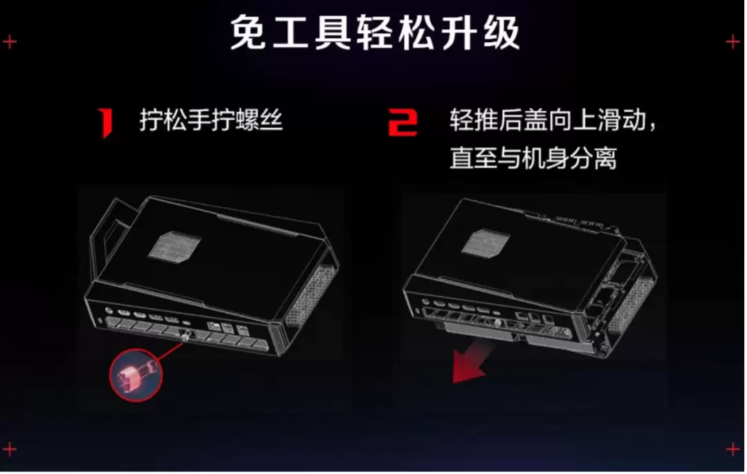 简化了ROG NUC的内部访问设计,用户可以轻松快速地拆开机箱,实现免工具升级内存和存储。主机标配32GB DDR5 6400MHz内存和1TB M.2 SSD,并预留了扩展空间。