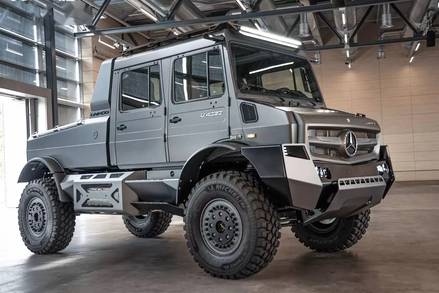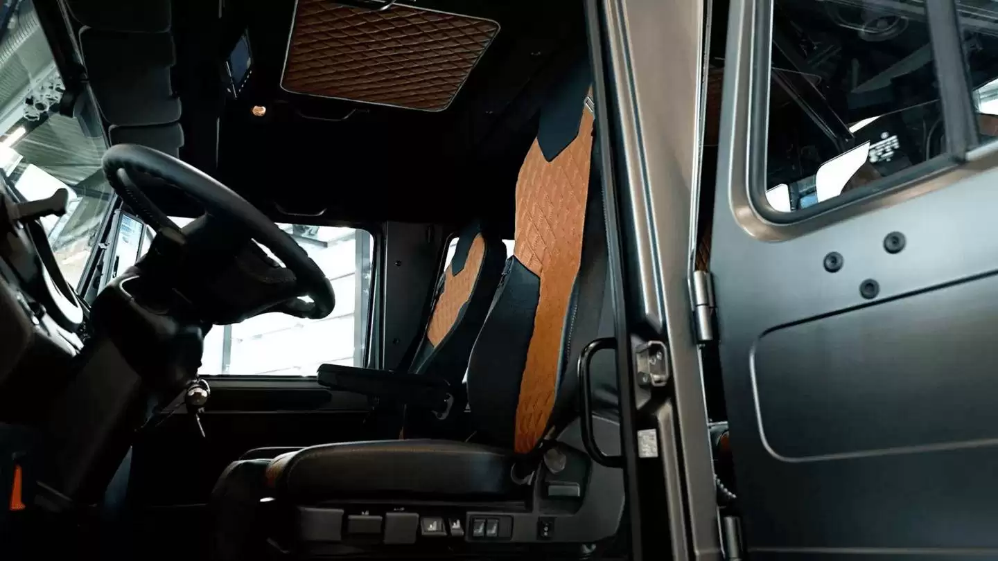 动力系统的升级是此次改造的核心亮点。新车搭载的7.7升OM936直列六缸柴油发动机取代了原有的四缸机型,最大功率从170kW跃升至220kW。奔驰工程师表示,这套动力总成在增强牵引力的同时,依然保持了乌尼莫克标志性的极限通过能力,无论是陡坡攀爬还是泥泞路段都能从容应对。传动系统则保留了标志性的三把差速锁与柔性车架,配合轮边减速桥,确保越野性能不打折扣。
