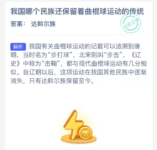 支付宝蚂蚁新村:我国保留曲棍球运动传统的民族是什么?