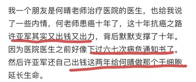 直至何晴治疗医院的医生透露相关情况后,公众才得以了解,许亚军并非冷漠之人,反而尽显重情重义。