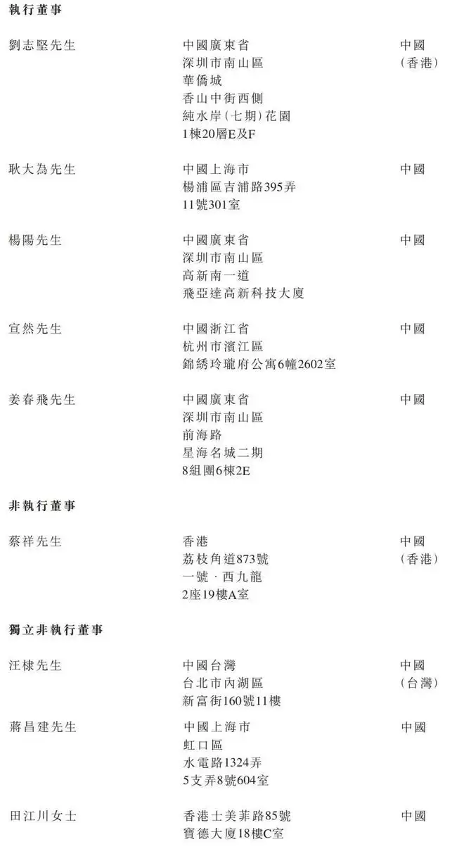 迅策科技执行董事分别为刘志坚、耿大为、杨阳、宣然、姜春飞;非执行董事为蔡祥,独立非执行董事分别为汪棣、蒋昌建、田江川女士。